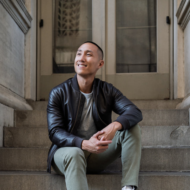 Made with buttery soft, full grain lambskin leather from New Zealand, and done in a classic bomber style, this jacket wears well now and will only get better with age. And it will fit like no other! Please note the leather will stretch a bit with time.