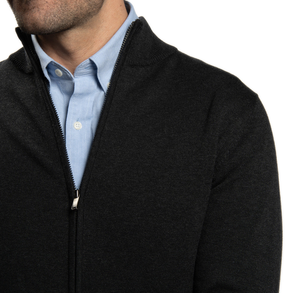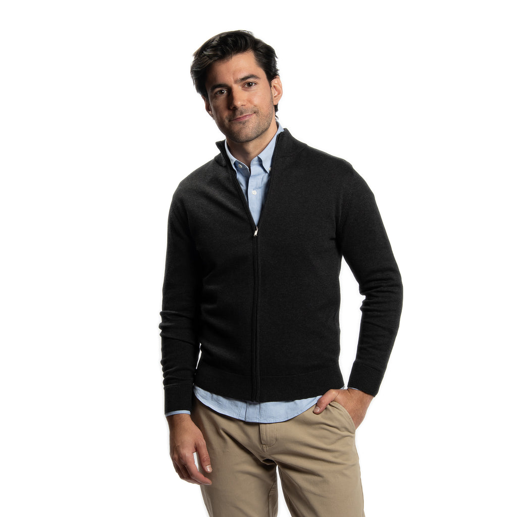 Pima Cotton Zip Sweater - Black