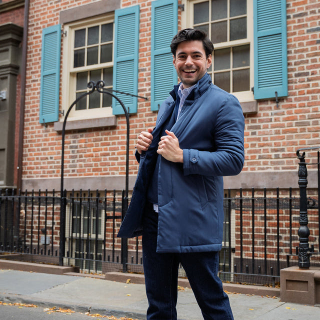 Based on a favorite winter jacket from Milan, this car coat includes PrimaLoft fill plus a 90/10 goose down bib for extra warmth, zip and button placket, stylish collar and cuffs and slash pockets. Made from quality materials to keep you warm without weighing you down, and in a sleek silhouette to keep you looking sharp.
