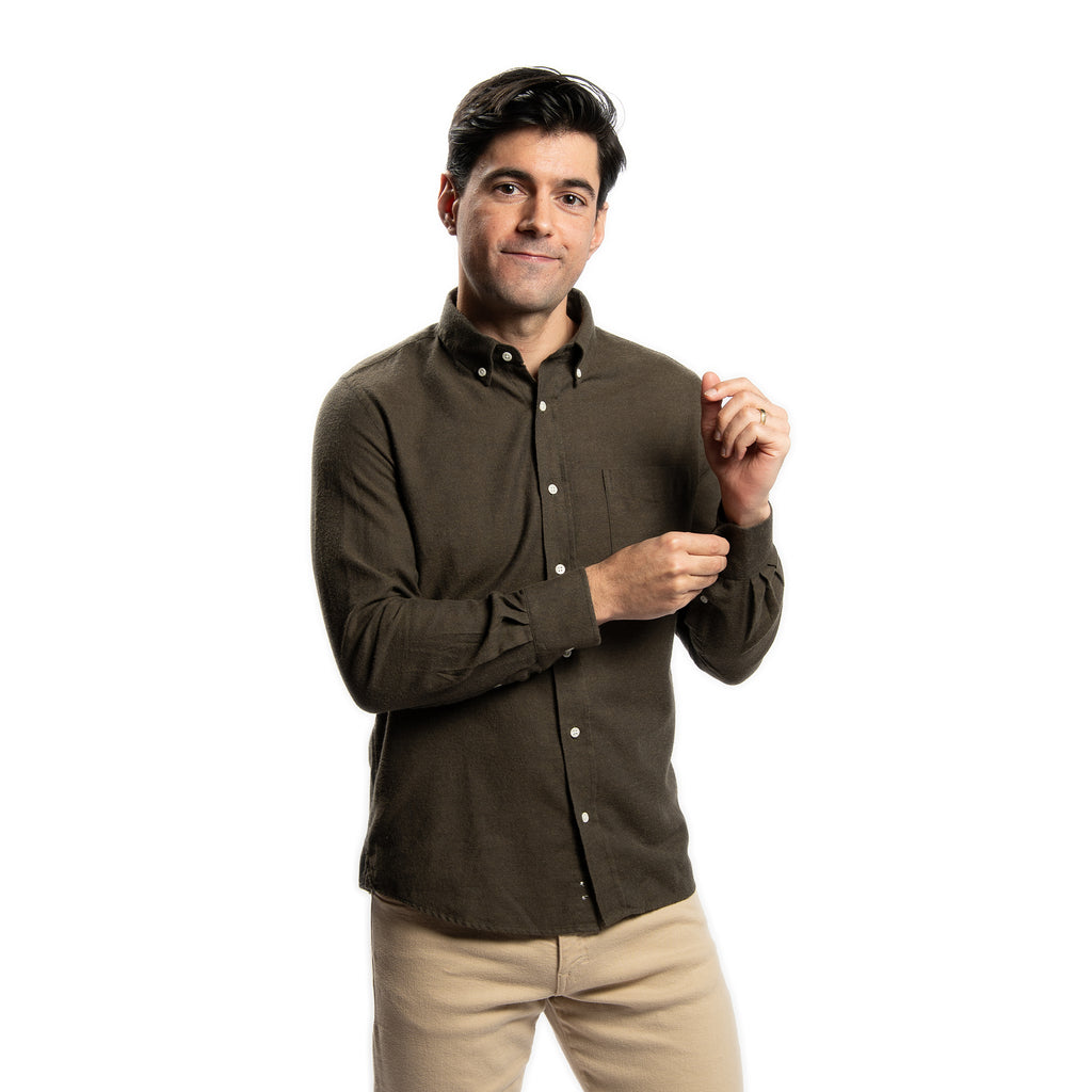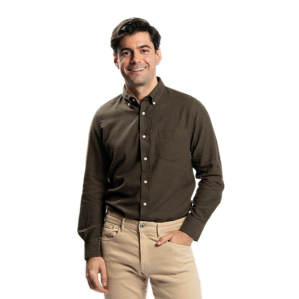 Made from a beautiful cotton merino wool blend fabric from Portugal, these shirts combine the softness and breathability of cotton with the warmth and comfort of merino wool. The merino wool is a great temperature-regulating fabric that also has moisture-wicking and odor-resistant qualities, without being itchy. Soft and warm and done in our Everyday cut.