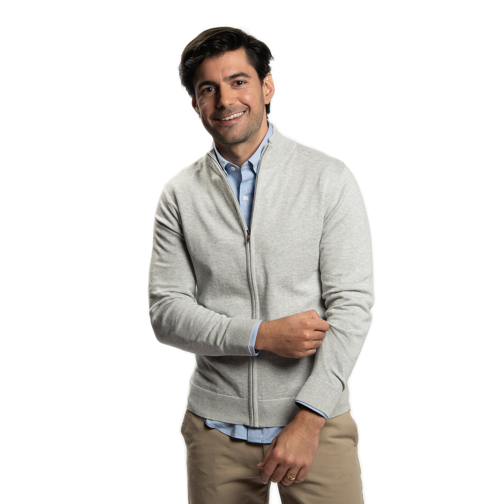 These full zip sweaters are made from 100% fine Pima cotton for a super soft feel in a lightweight fabric. Perfect over a t-shirt, polo or Oxford. No itchy or baggy sweaters here!