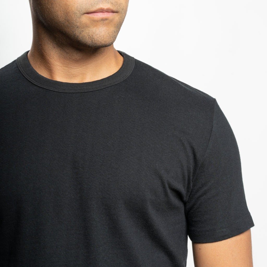 Knitted in Japan on loopwheel machines, these luxury t-shirts are both soft and sturdy. The slow and delicate knitting process results in a breathable fabric with a comfortable feel, and also produces a dense and highly durable shirt that retains its shape. They only get better with time!