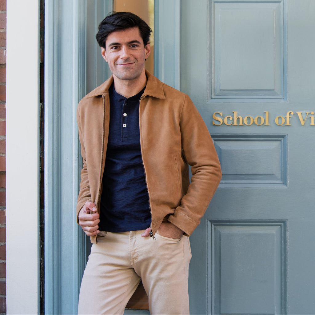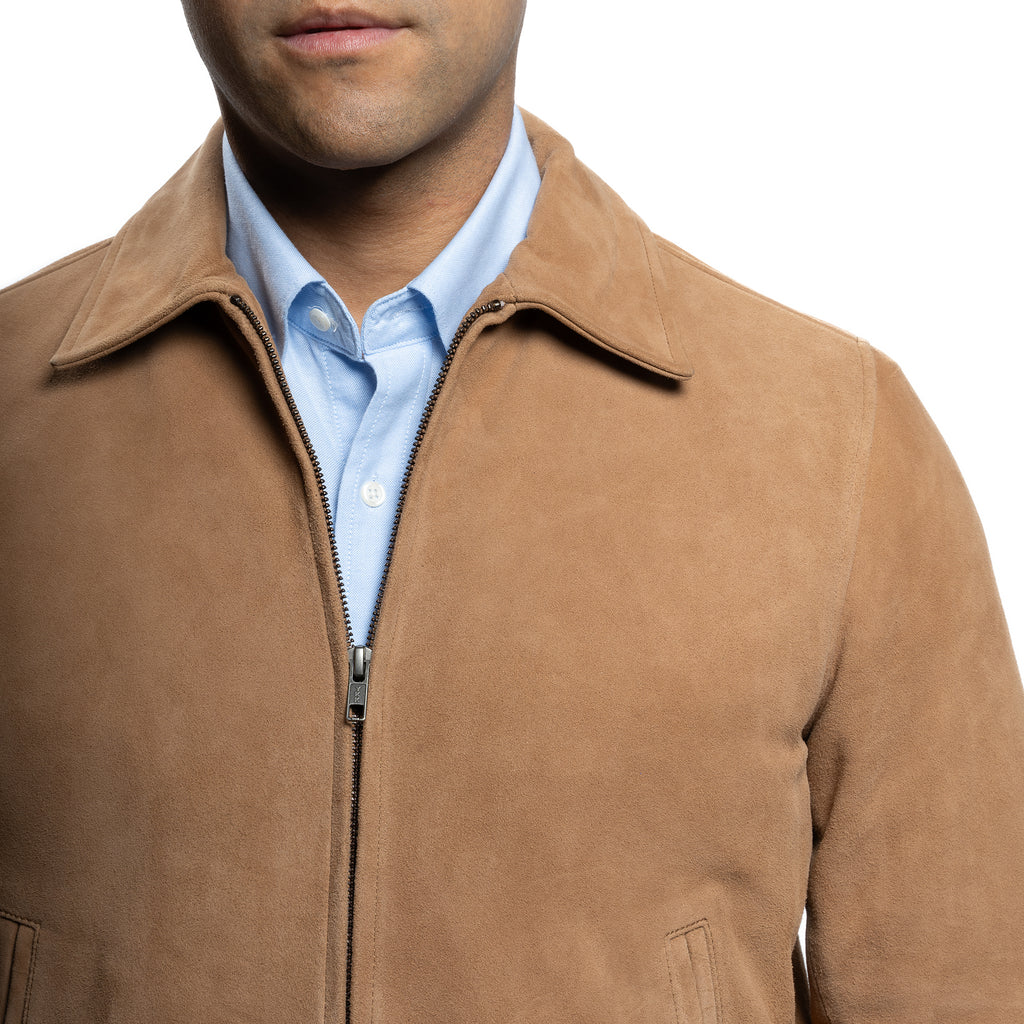This Limited Run jacket is made from beautiful goat suede with a luxuriously soft nap. Still rugged and durable, it is designed in a sleek silhouette with two slash pockets and buttoned cuffs. A contemporary take on a classic jacket and a special piece for your wardrobe.
