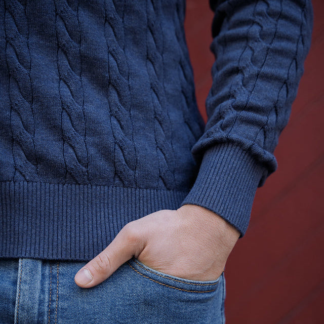 Cotton Cable Knit Sweater - Navy