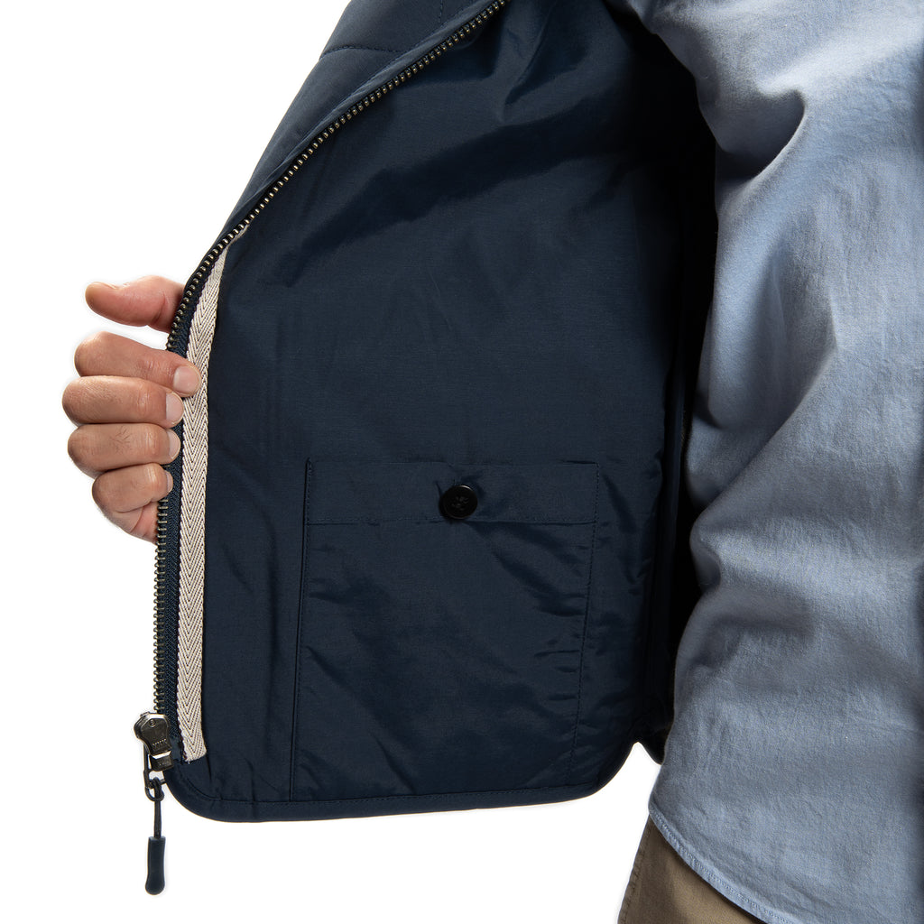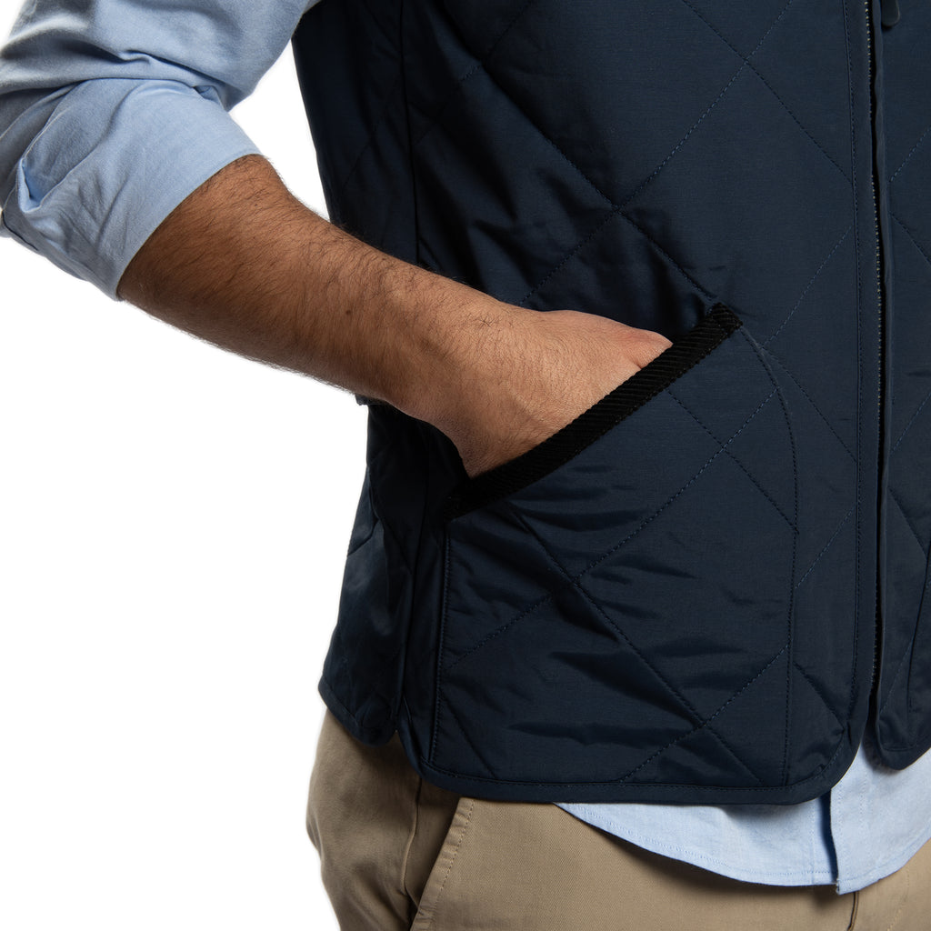 The OG Flatiron Vest 2.0 remains an essential cool-weather layering piece. Made with a water-resistant cotton nylon shell, lightweight PrimaLoft fill, corduroy collar and cinch buttons at the waist, it is both stylish and functional. Hip cousin to our Quilted Jacket, it is super versatile and can be worn on its own over a shirt, or layered under a jacket.