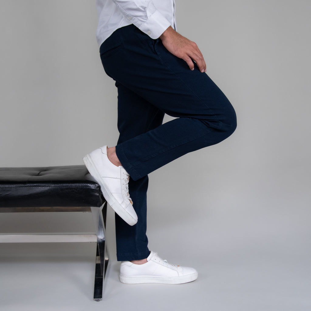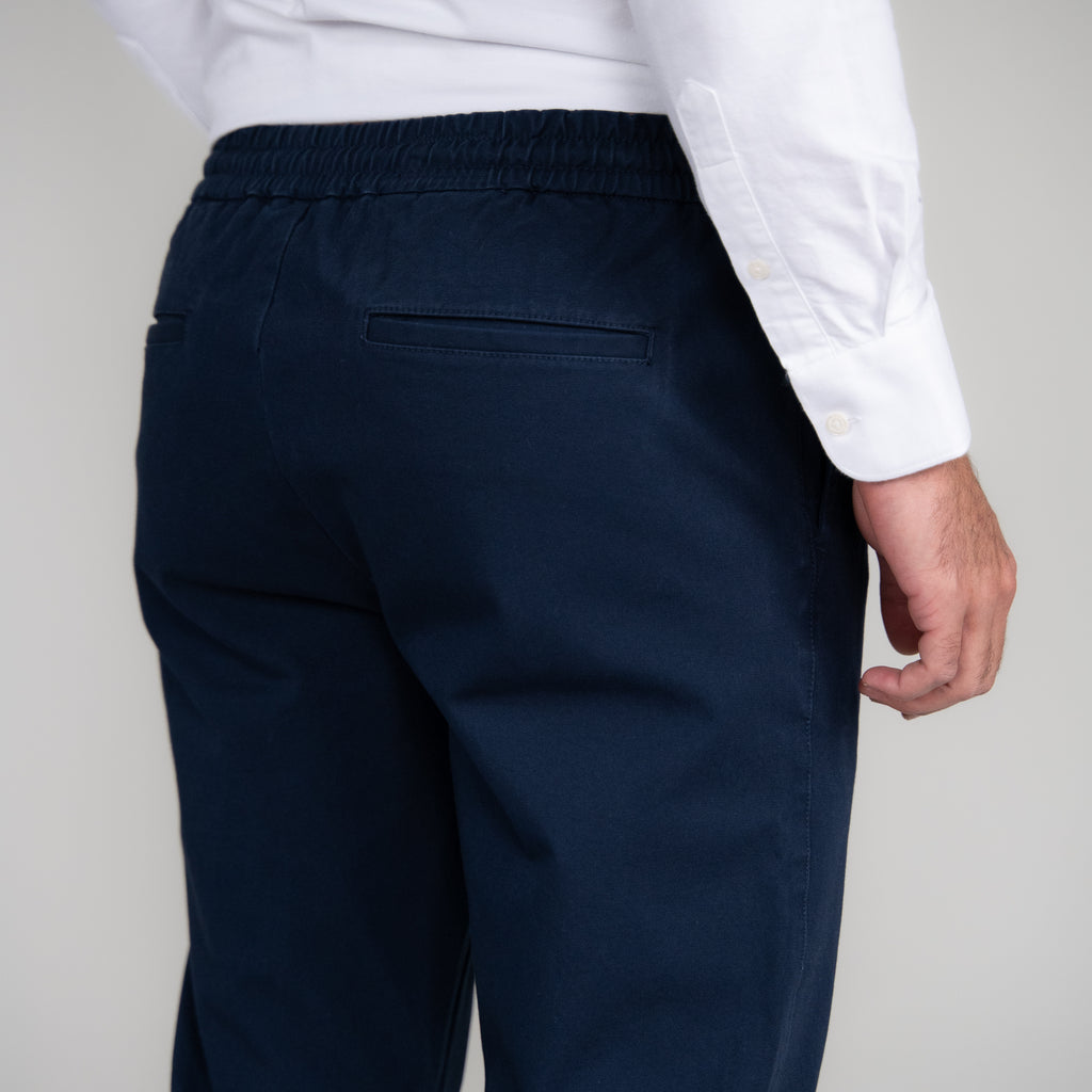 , these pants are made from a beautiful piece-dyed stretch cotton fabric and include an elastic waistband and drawstring. A contemporary alternative to your everyday chinos. Available in both 26 and 28 inch inseams, they work well with just about everything - a t-shirt, Oxford, blazer and more. Try 'em and have fun!