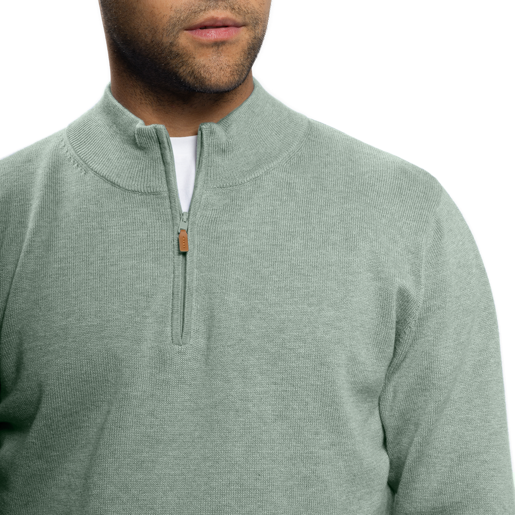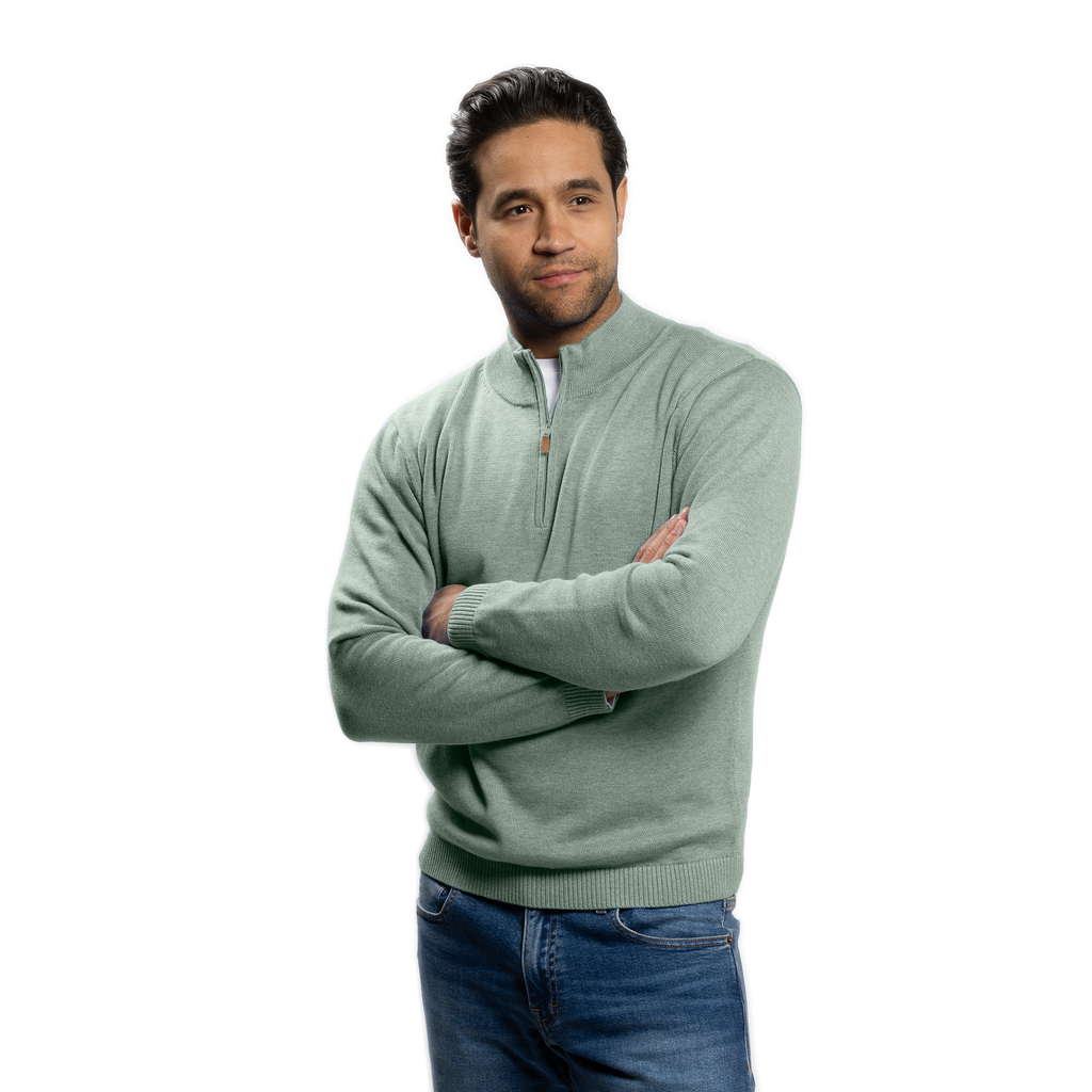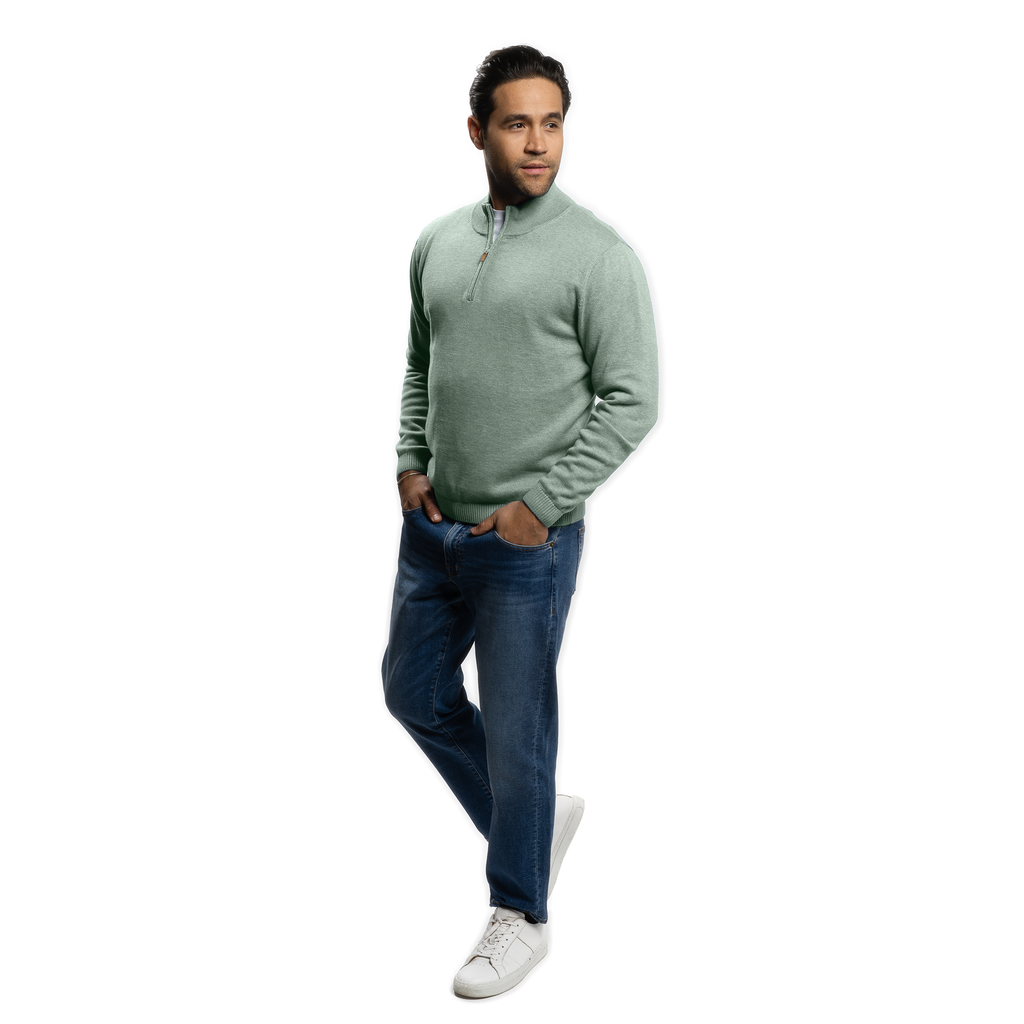 Pima Cotton Quarter Zip Sweaters - Sea Green