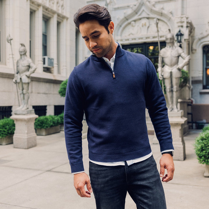 Our Pima Cotton Quarter Zip Sweaters are made from 100% soft and sturdy Pima cotton for a warm, comfortable feel. Great over our shirts and/or under our blazers, these sweaters are designed to add a little extra style to your look.