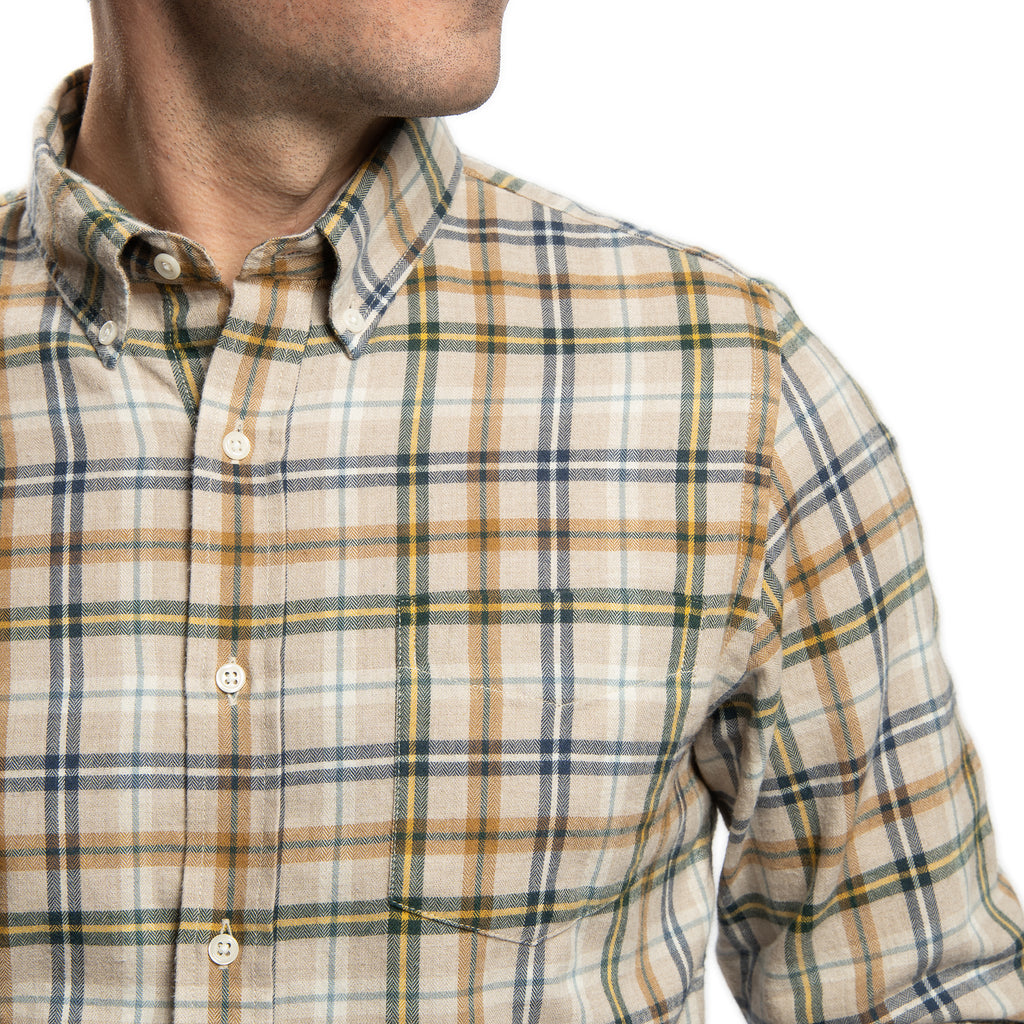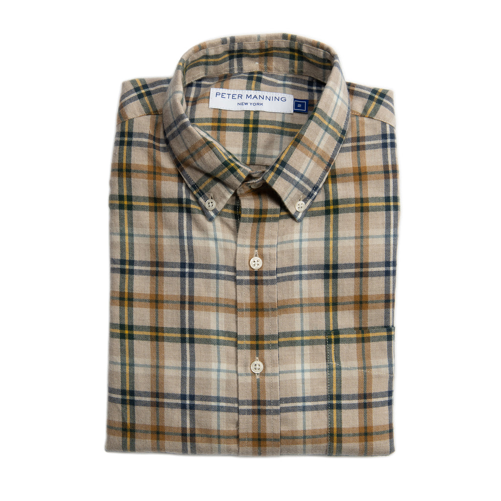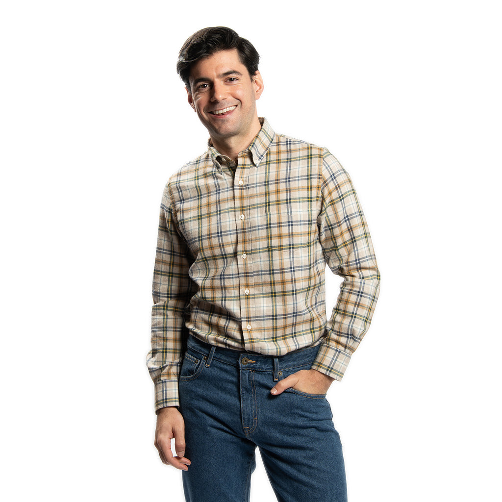 Cotton Merino Wool Shirts - Tan Plaid