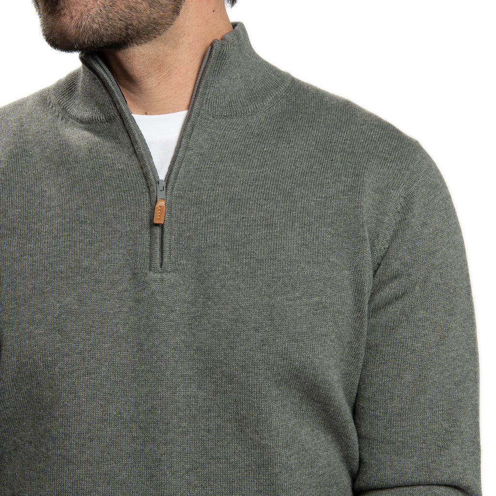 Pima Cotton Quarter Zip Sweaters - Charcoal