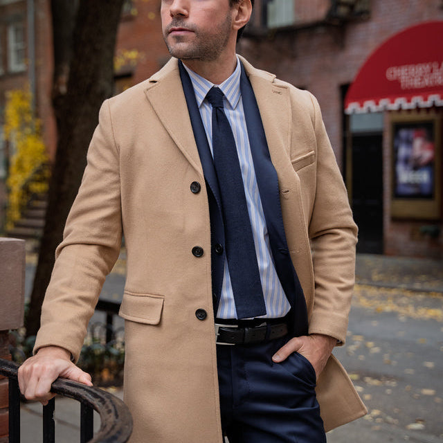 Made from a soft wool-cashmere fabric from Italy, this topcoat looks sharp over a suit or worn more casually with jeans or chinos. Quality details like a sturdy Bemberg lining, contrast felt collar and pockets where you need them give it a luxurious look and feel. And of course the fit is like no other, never too long, never too baggy!