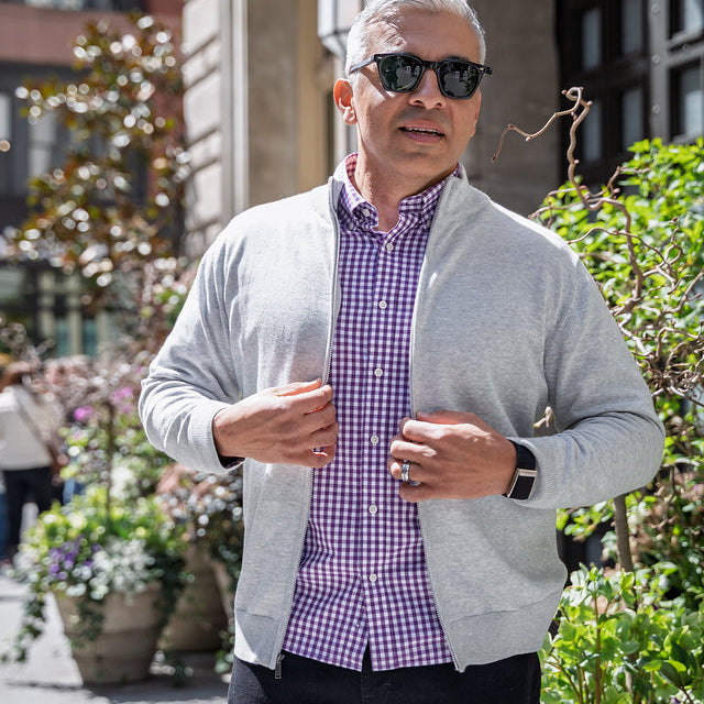 Pima Cotton Zip Sweater - Light Grey